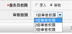 4. 选择操作员角色。角色分为制单人和审核人,审核人分为1、2、3级审核权限,请根据该人员岗位分配审核级别。(注:按级别顺序审核,如1级审核通过后2级审)